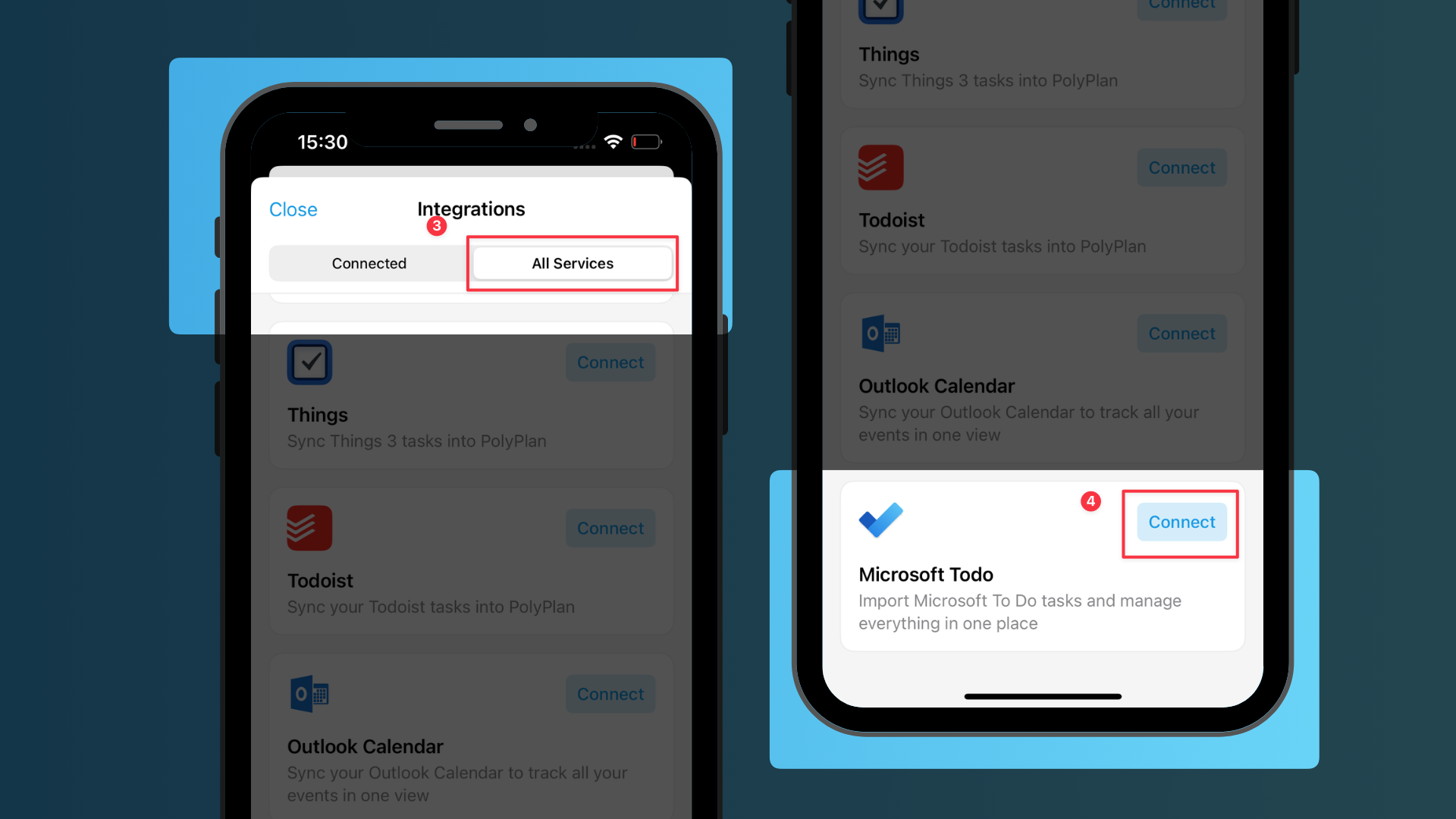 In the All Services category, find Microsoft Todo, then tap Connect.