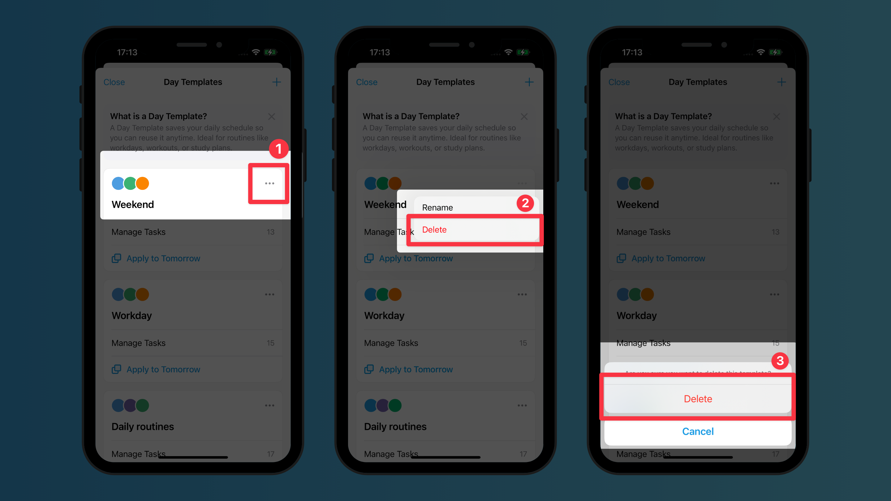 • Tap on the 3-dot menu button > Delete