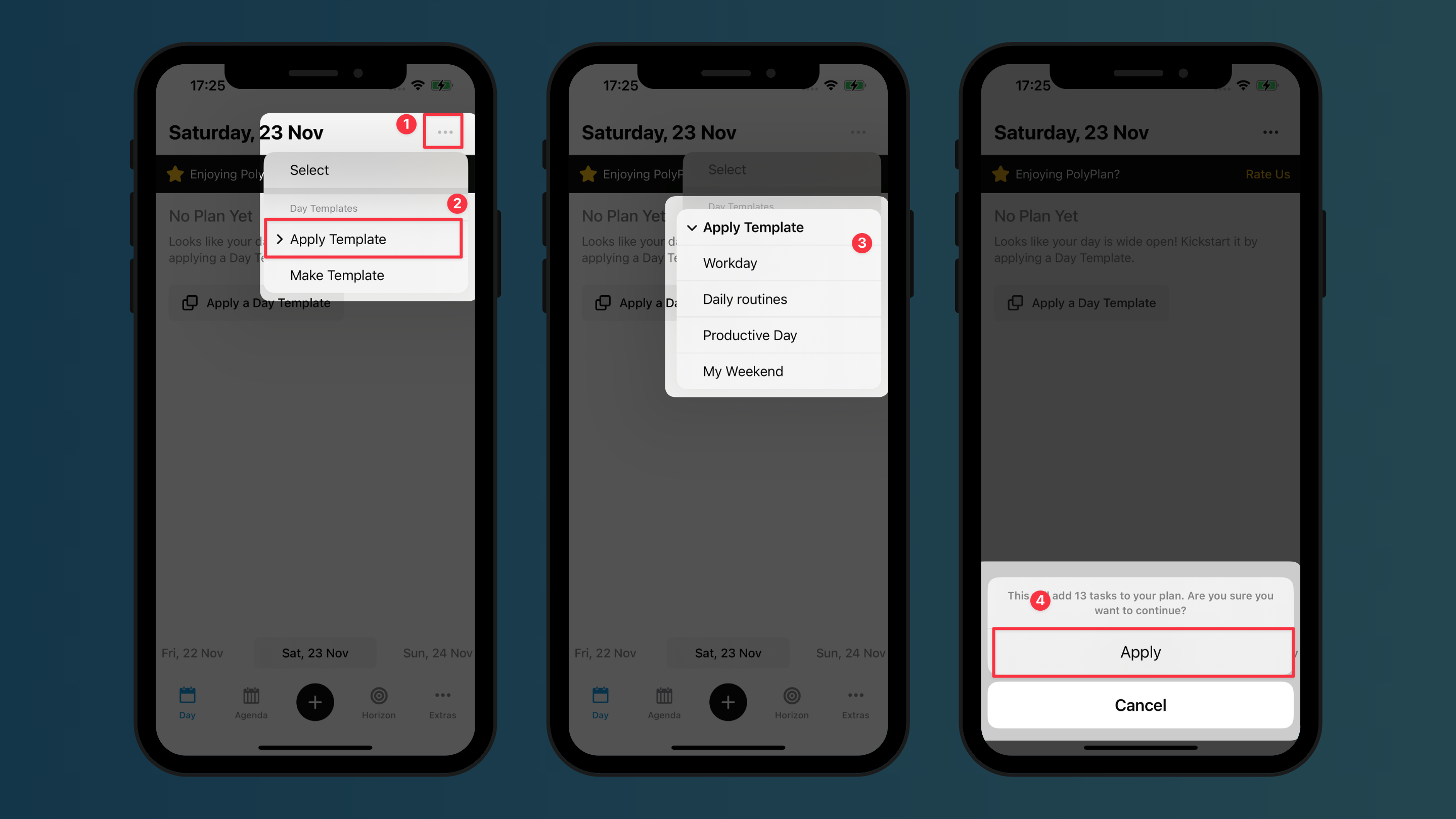 Apply a template to a day